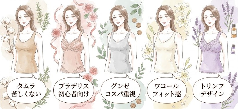 補正ブラキャミは万能に見えますが、悩みによっては別の補正インナーのほうが合うこともあります。