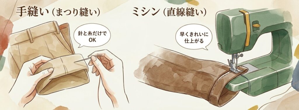 裾上げに使う道具は、手縫いかミシンかで少し変わります。